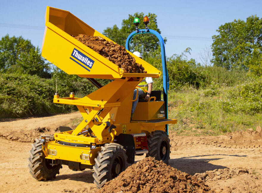 The Thwaites 2 tonne, Stage V dumpers are manufactured with contractors and hirers in mind – ensuring operator safety, reducing risk on site and improving performance. Powered by either the traditional 18.1kW Yanmar engine, delivering 107 Nm max torque, or the all-new 48V Electric drive pack using four maintenance-free, long-life, lithium-ion (dry cell) batteries rated at 22kWh. The battery pack drives two highly efficient electric motors (one for traction, one for the hydraulic services) giving the operator the control and manoeuvrability expected from a Thwaites dumper.